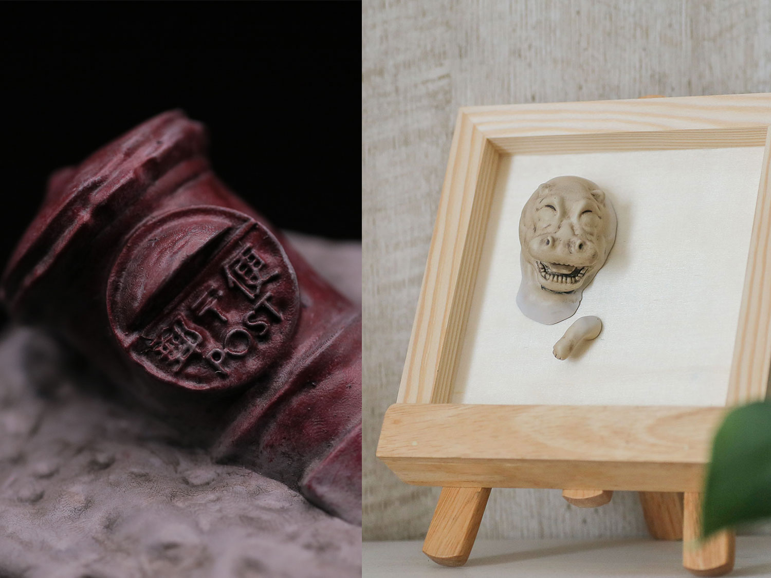 動物たちの純粋で幸福な世界から、私たちの日常へと誘いに来た使者たち。 木枠という境界を突き抜け、人間界の空気に触れたその瞬間、真っ白だった彼らの肌には「汚れ」という名の生きた証が刻まれました。