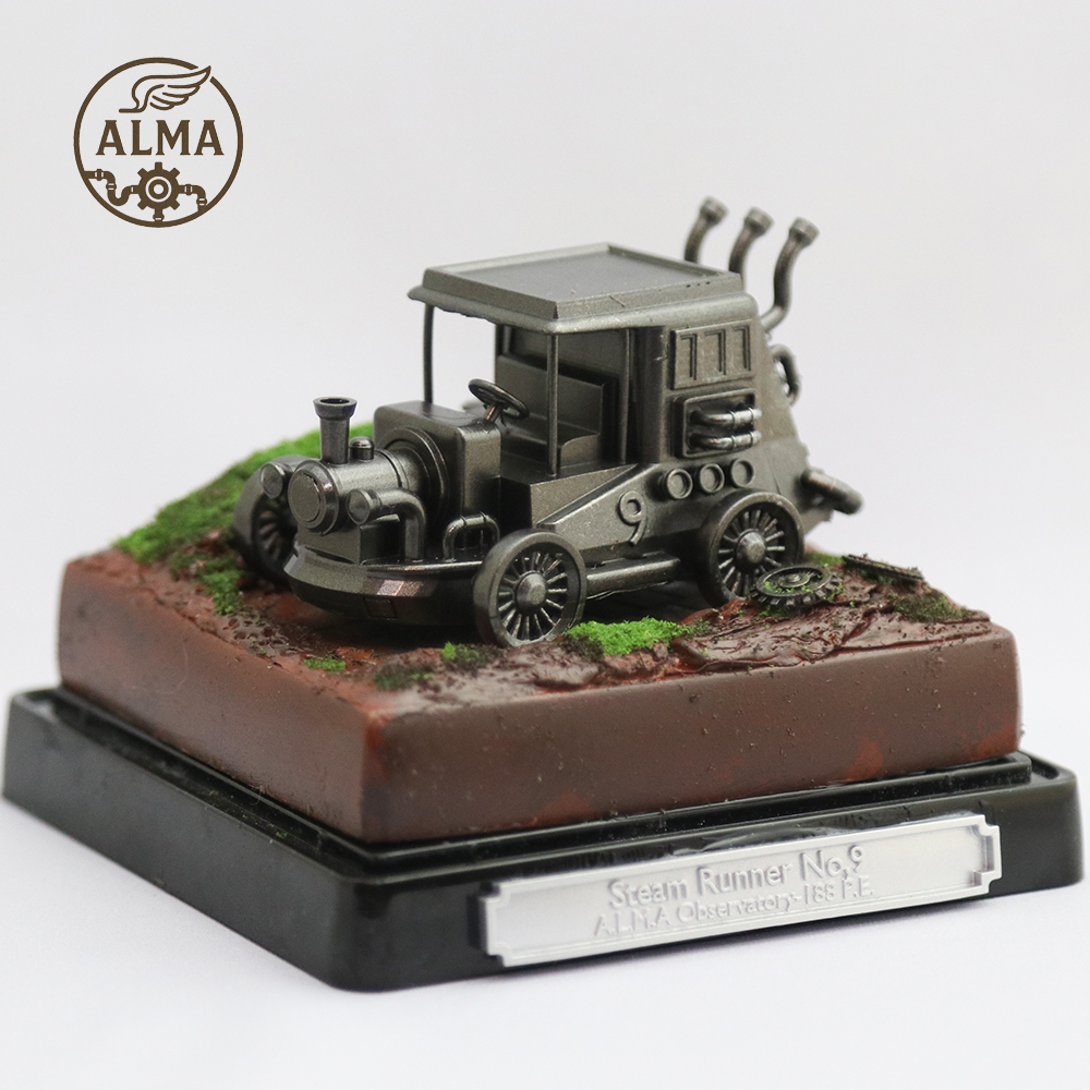 ジオラマとして再構築されたそれぞれの作品は、かつてALMAの世界に確かに存在したとされる装置や風景の“痕跡”です。